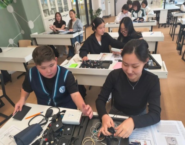 _______________________________________________________________________________________________________________________________________________ Мастер-класс "Знакомство с лабораторией РобиКлаб" (10.10.2025г) Сегодня в Школьном Кванториуме прошёл мастер-класс "Знакомство с лабораторией РобиКлаб (нейротехнологии)" для учащихся 9х классов. Участники не просто слушали лекцию, а становились инженерами-биониками, которые с помощью современных технологий изучают и моделируют живые системы.